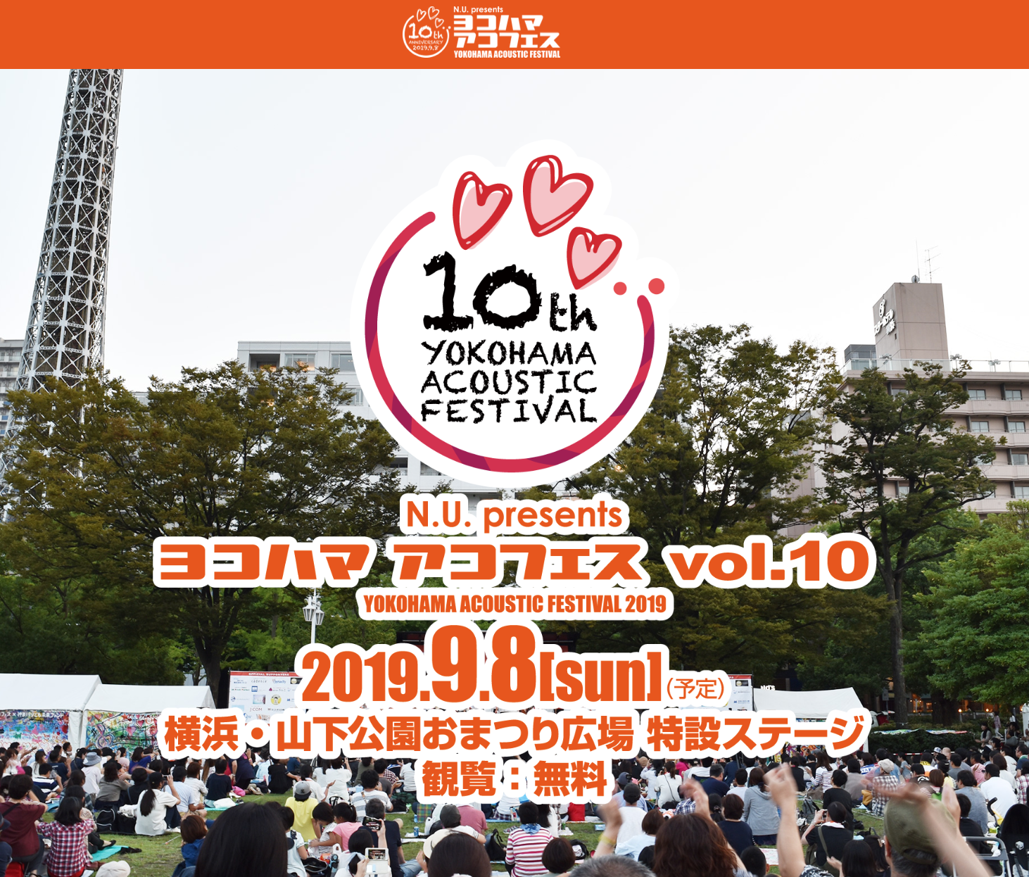 ヨコハマアコースティックフェスティバル vol.10 ************ 2019年9月8日(日) 山下公園 おまつり広場 特設ステージ ************